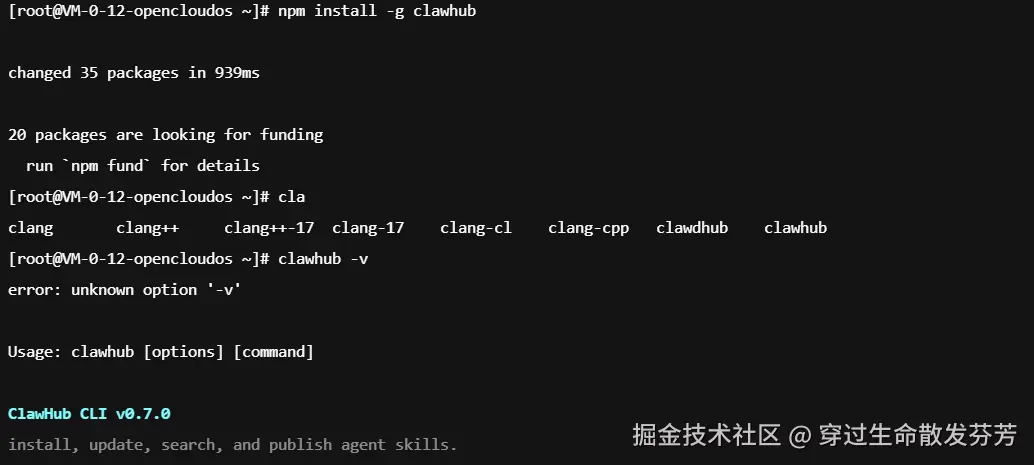 1、安装clawhub。