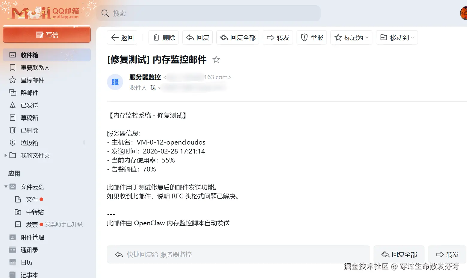 登录邮箱之后,成功收到邮件。