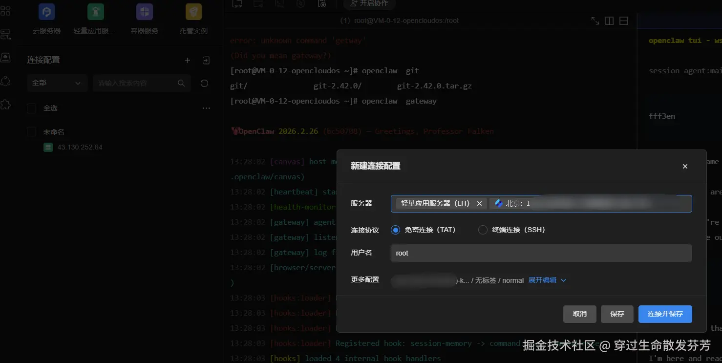 OpenCloudOS是构建现代化云平台的理想选择,尤其适合需要轻量级、高可用操作系统的场景。本文将使用腾讯云轻量服务器LightHouse部署OpenCloudOS系统,并在其上安装一个 OpenClaw来打造AI运维助手。