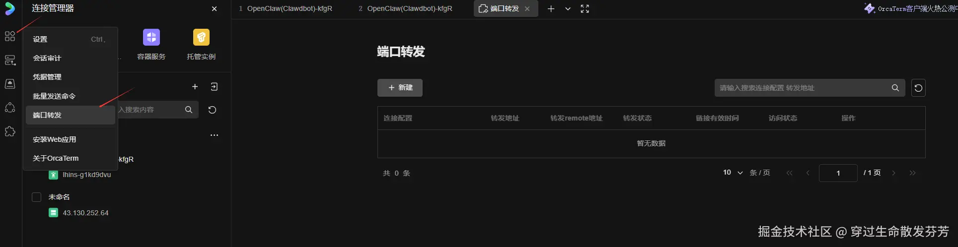 3、左侧功能菜单中找到并点击端口转发,在端口转发页内单击新建按钮。
