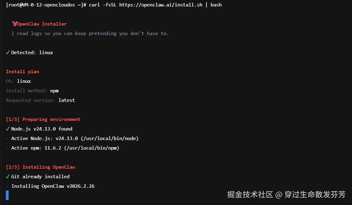 2.2 在OpenCloudOS上安装OpenClaw