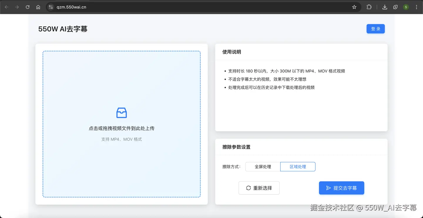 - 秒级上手: 核心流程被简化为**“上传视频 -> 框选字幕 -> 一键处理”**。