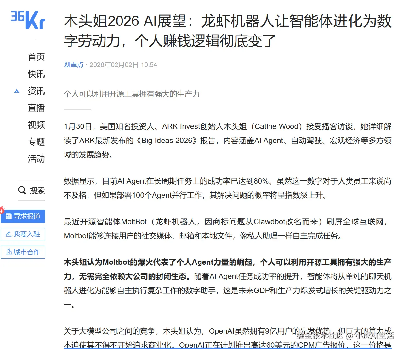木头姐年初的展望报告里给了一个数据:AI Agent 在长周期任务上的成功率已经到了 80%。一个 Agent 成功率 80%,不及格。但 100 个 Agent 并行,解决问题的概率是指数级上升的。