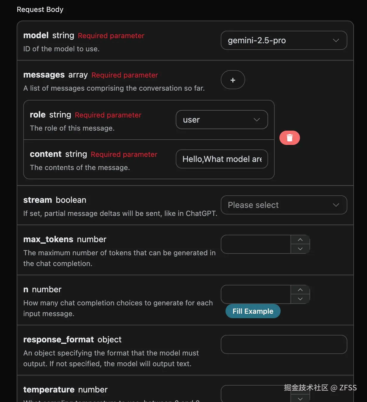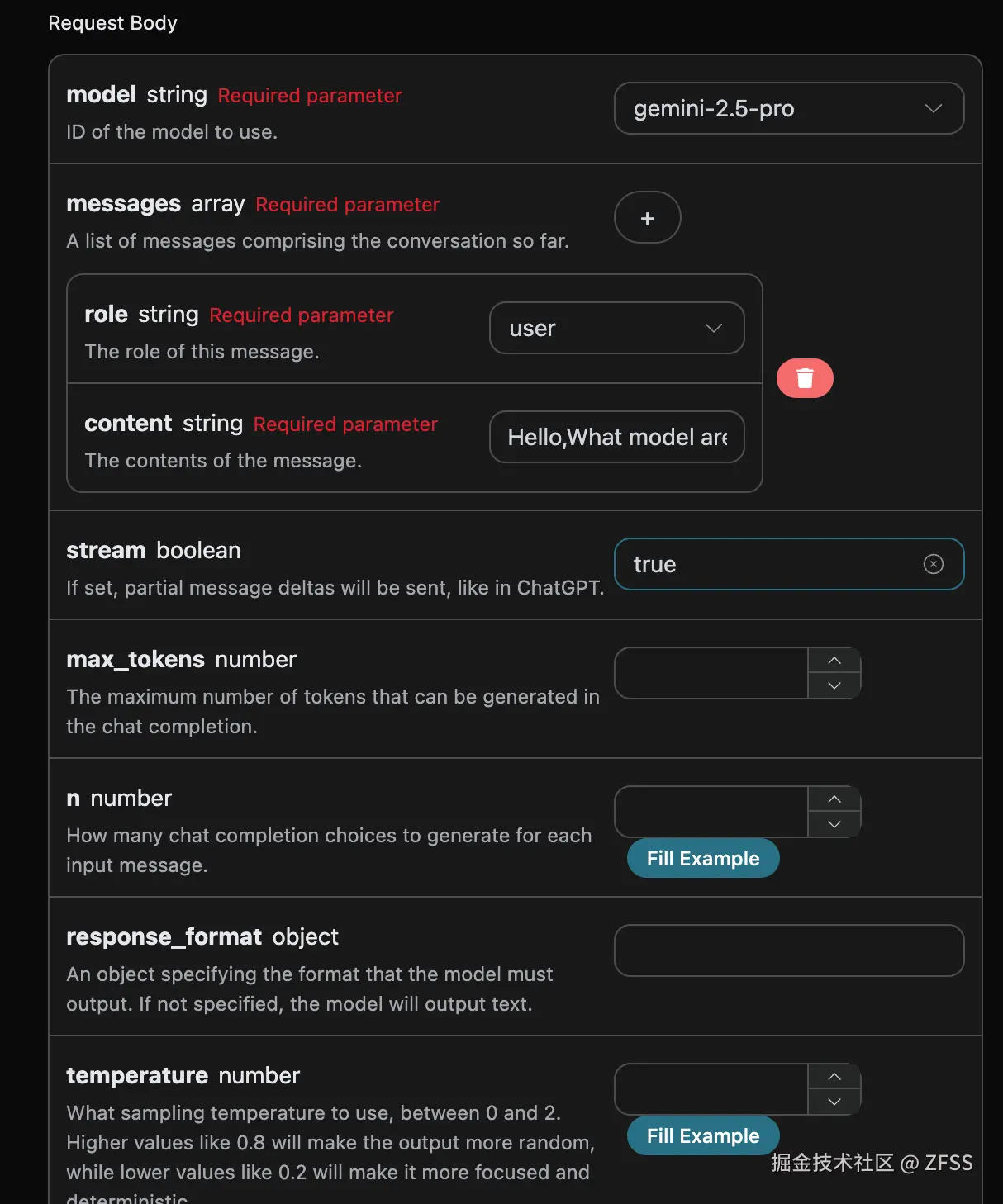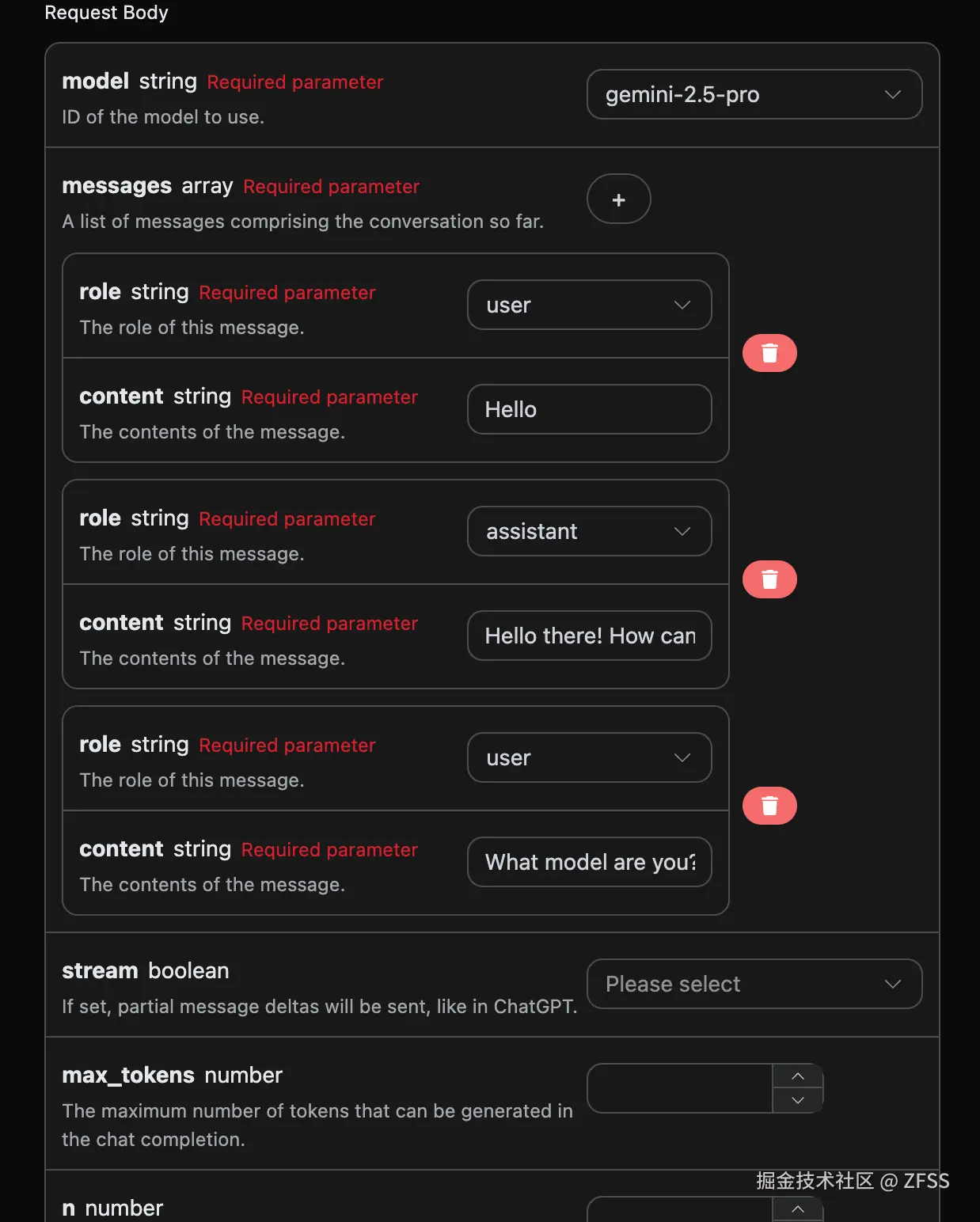 jsonObject.put("messages", [{"role":"user","content":"Hello,What model are you?"}]);
