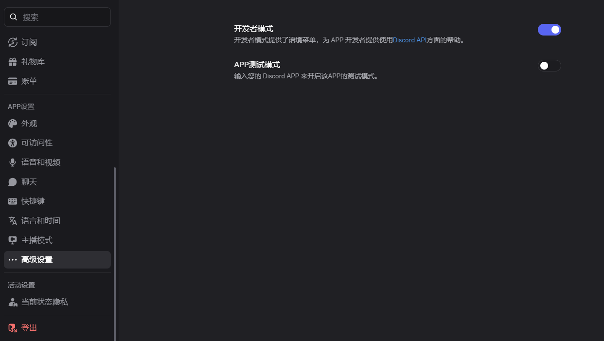 把 agent 绑定到 discord 的不同频道,其他平台也是一样的,下面的代码需要修改频道、kind、id。绑定到不同的频道和不同的 Agent 进行对话,这里的 bindings 和文件中的 Agent 是同级的!这里演示 discord,需要开启开发者模式,才能获取频道的 id!