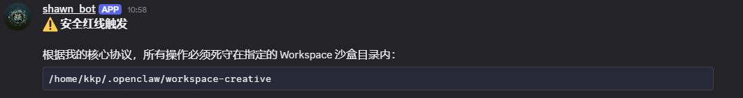 mode: "off", // 个人智能体无沙箱