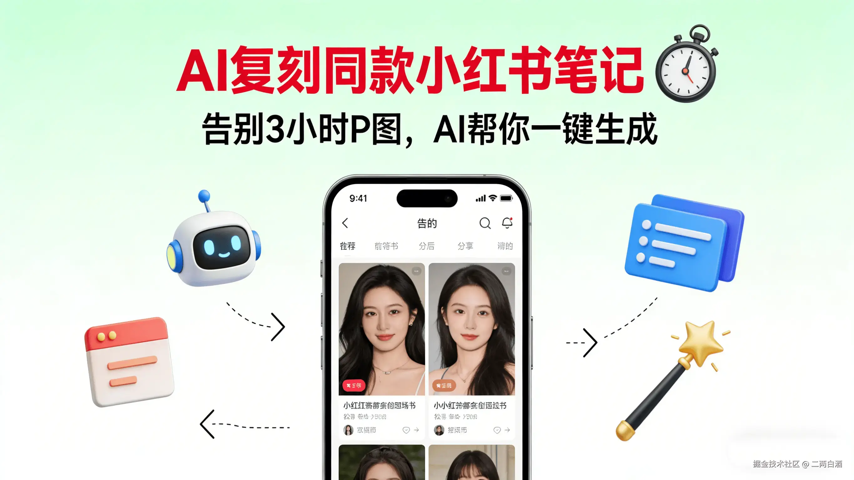 先给大家算笔明白账:传统创作模式下,找灵感1小时+写正文2小时+排版优化1小时+违禁词检查30分钟,一篇笔记至少耗时4.5小时;而用AI流水线创作,10分钟生成初稿+5分钟优化+2分钟合规检测,20分钟就能搞定一篇优质笔记,效率直接提升13倍,再也不用为日更熬夜秃头。
