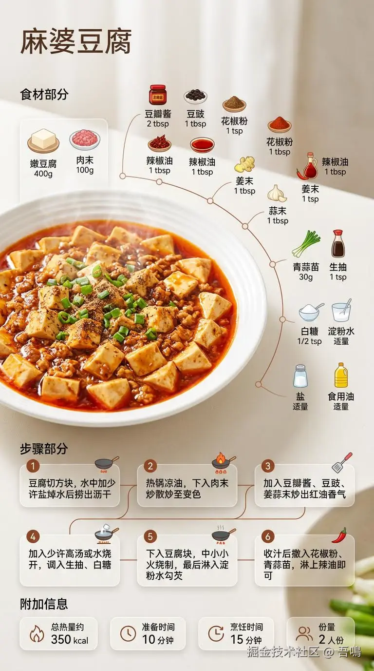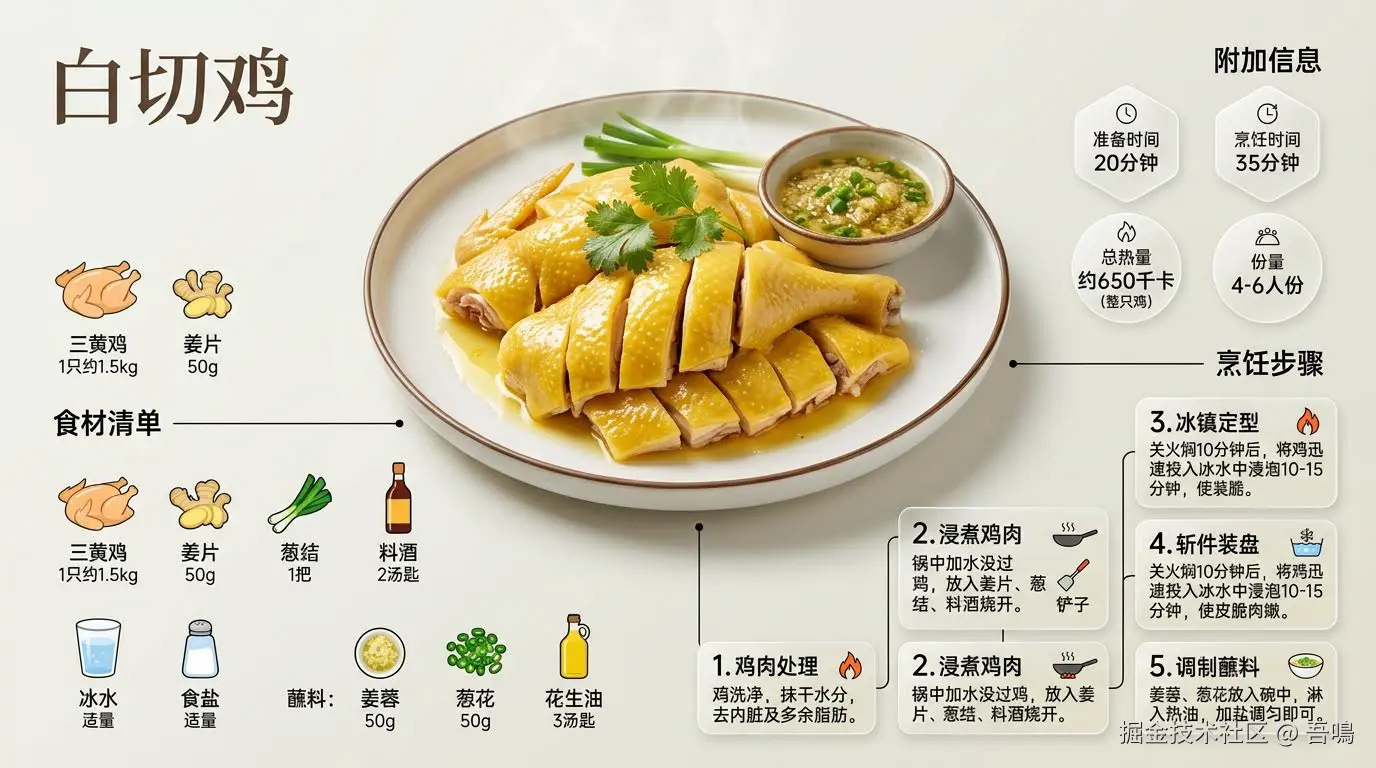 本文要分享的工作流只需要输入菜品的名称,比如“白切鸡”、“麻婆豆腐”、“西湖醋鱼”等,那么工作流会自动运行,产出对应的菜谱图片。