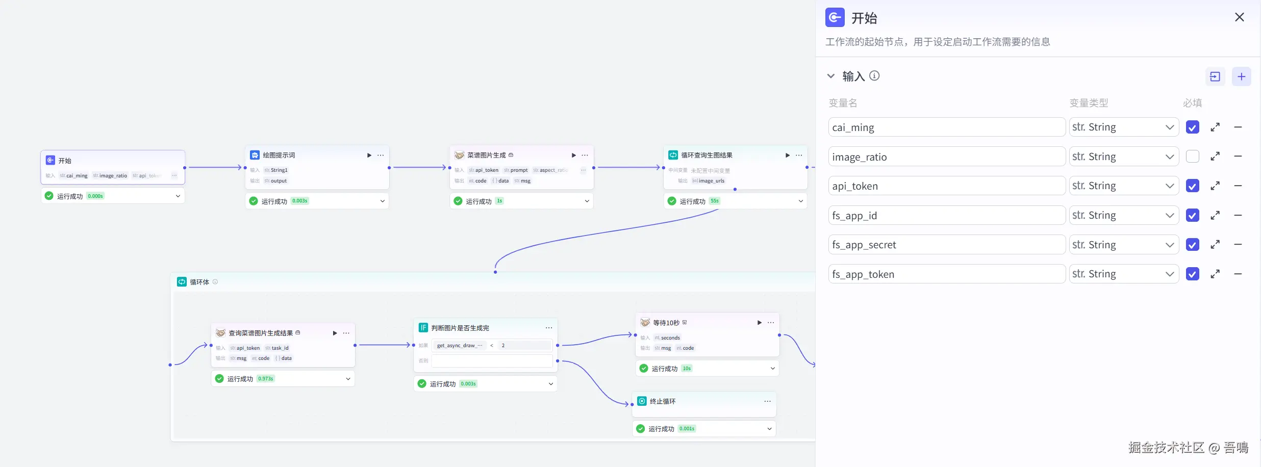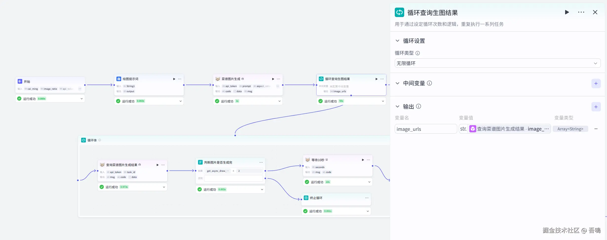 这个节点用来循环的查询生图的结果,使用到了扣子官方的【循环】节点。