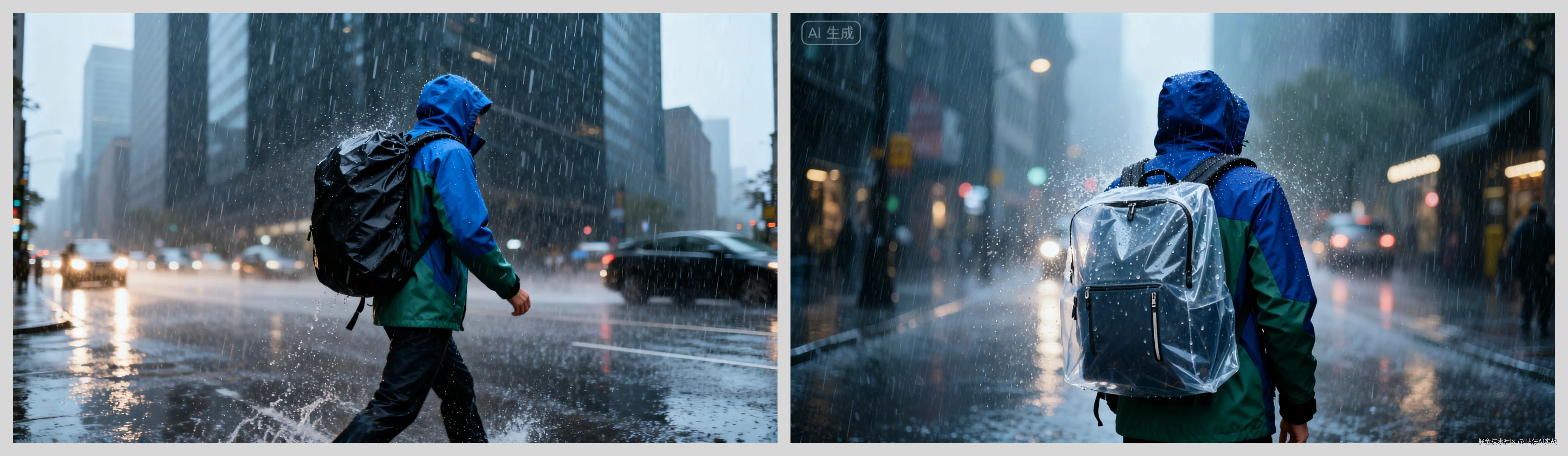 城市通勤 :应对突降暴雨的通勤场景,搭配背包罩使用