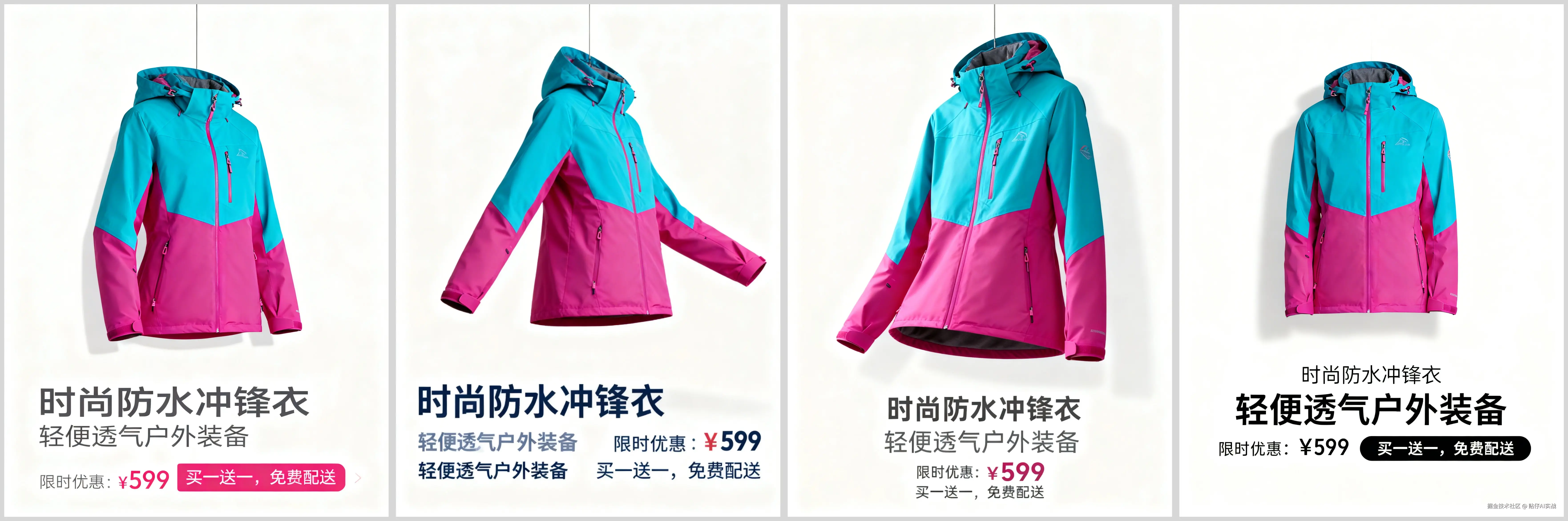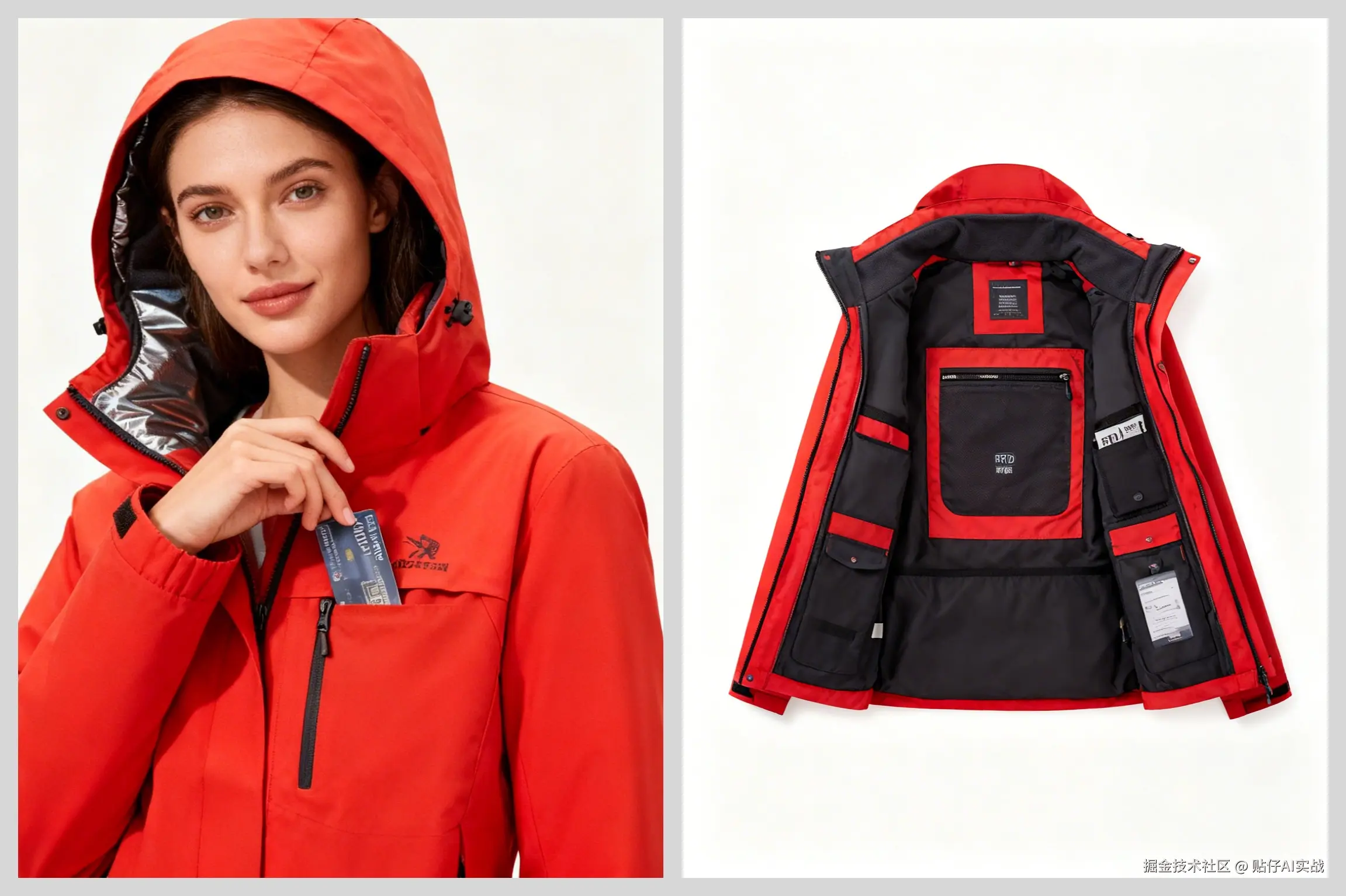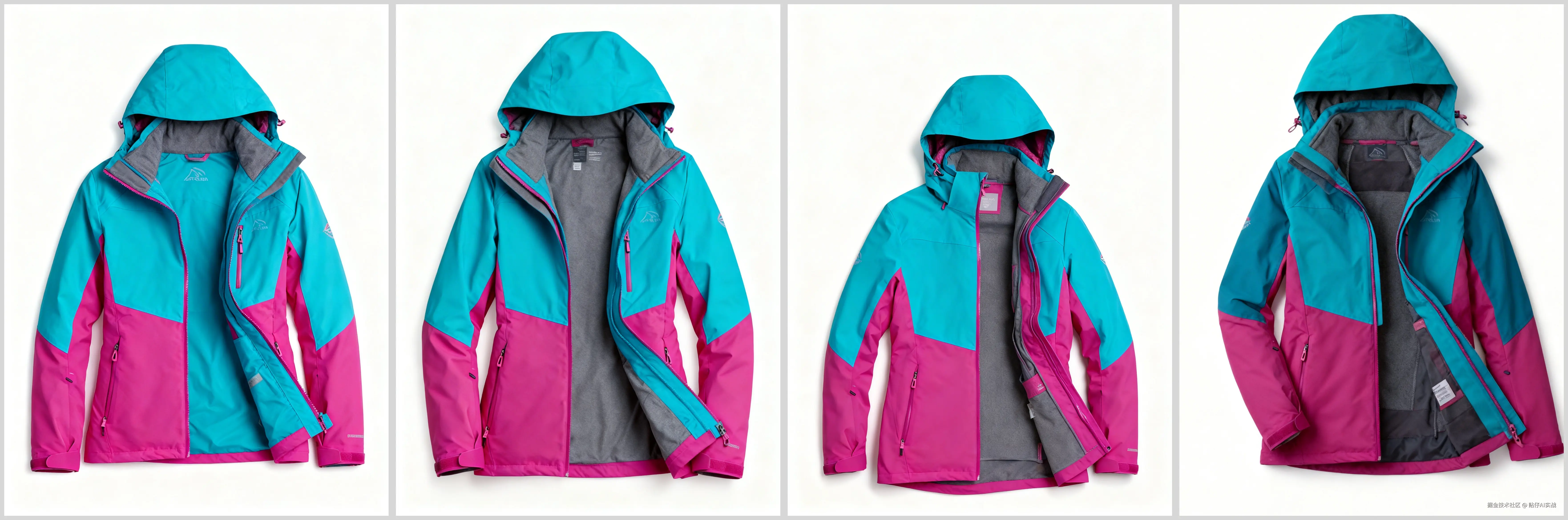 输入描述:悬挂主图:纯白背景,女式冲锋衣立体悬挂,展现流线型剪裁。*