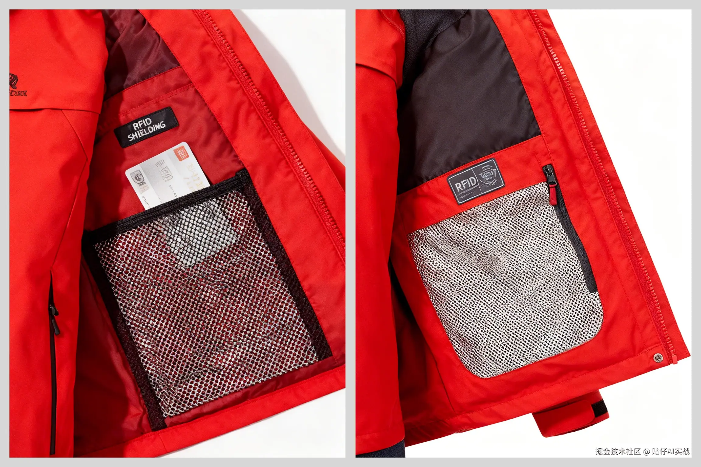 - 内部收纳系统:展示内置安全口袋的RFID屏蔽功能