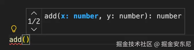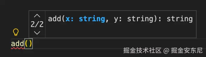 原文还放了两张图,展示编辑器只会提示“声明签名”,而不会把实现签名暴露出来:
