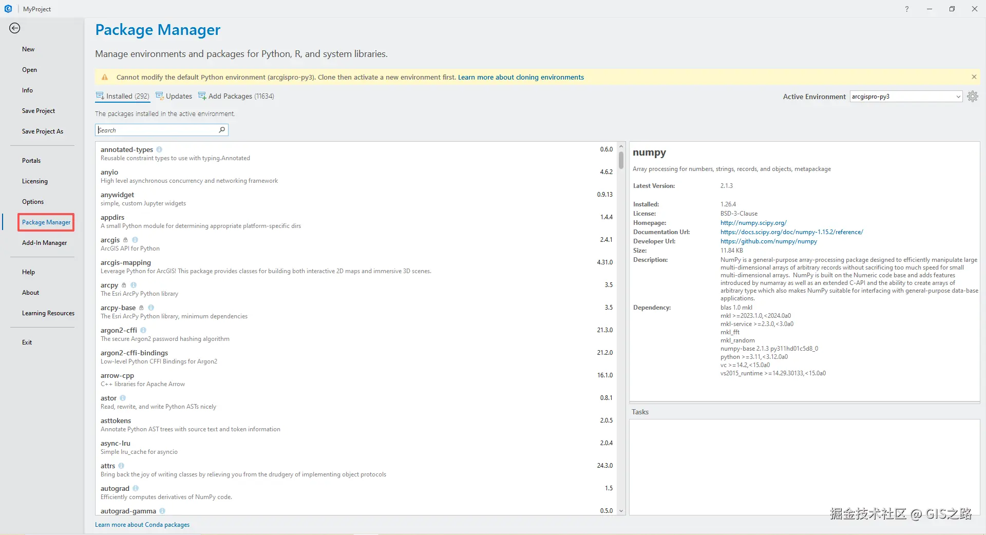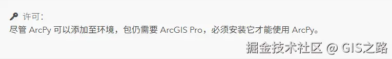 需要注意的是即使ArcPy可以下载安装,但包仍需要ArcGIS Pro,必须安装它才能使用ArcPy。
