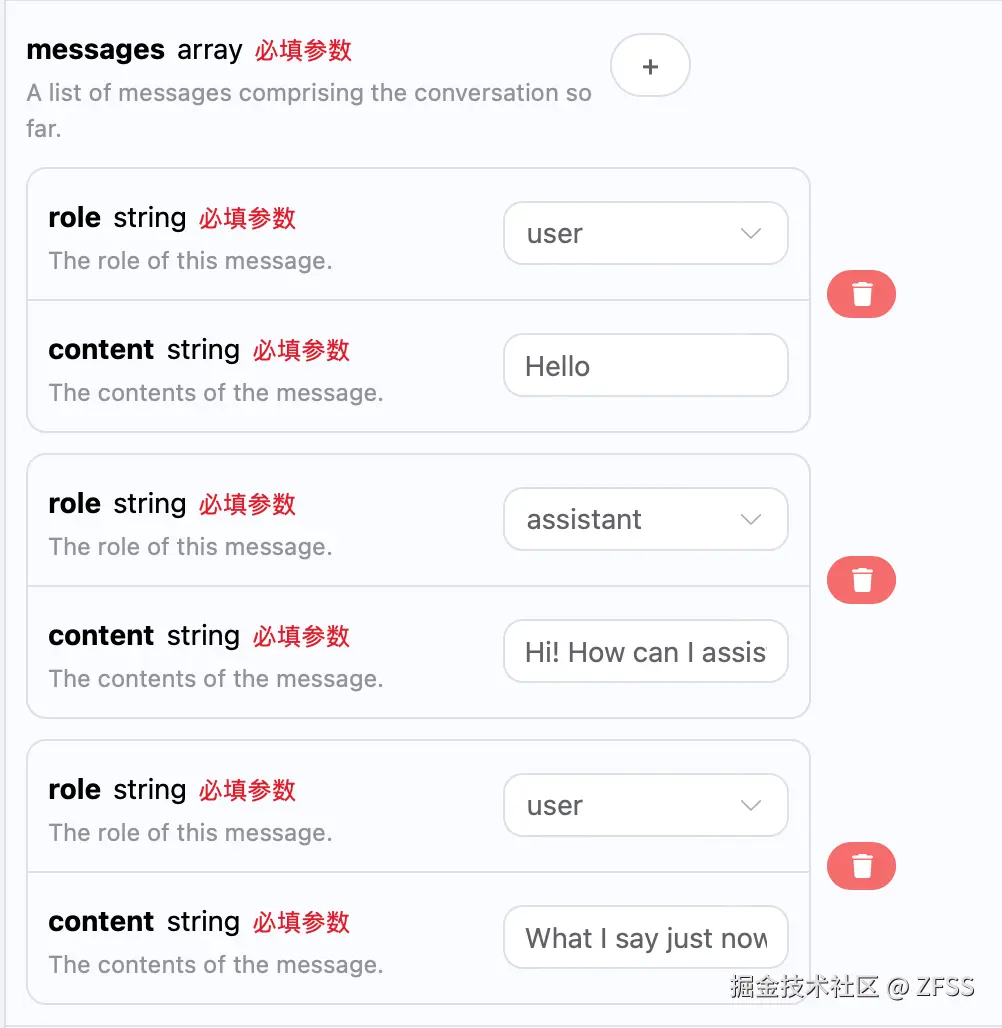 jsonObject.put("messages", [{"role":"user","content":"hello"}]);