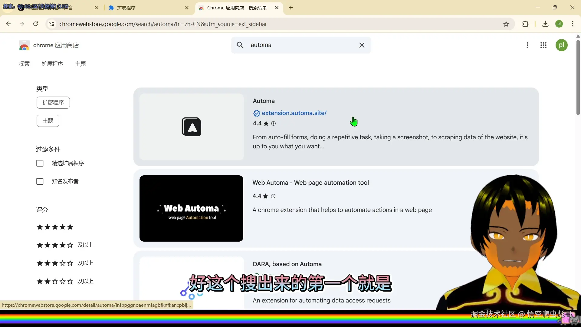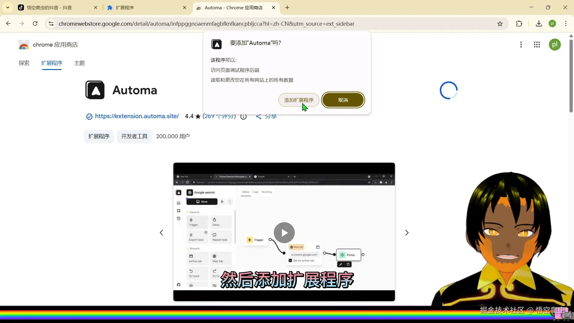 添加扩展程序并等待下载完成安装完成后,即可在浏览器右上角看到 Automa 图标。