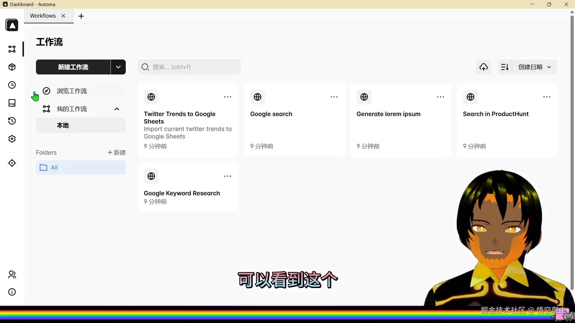 - 新建工作流点击“新建工作流”命名为:抖音取消关注