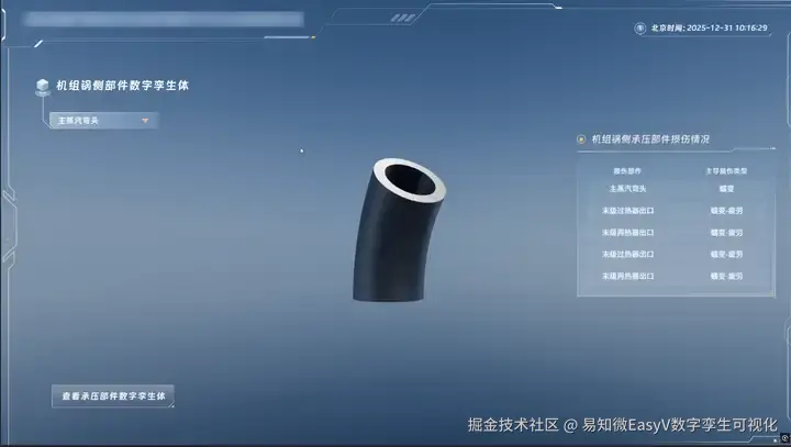 打通设计参数、制造记录、检测数据与运行工况之间的信息壁垒,借助同一空间载体将复杂的安全评估、损伤分析、性能变化与风险分布转化为直观易理解的三维呈现。大幅降低技术研判与运维决策的沟通成本,提升风险识别的及时性和准确性。通过对关键部位状态与演化趋势的持续监测,辅助管理人员预先制定针对性检修与运维方案,全面提升工业设备运行的安全性和前瞻性。