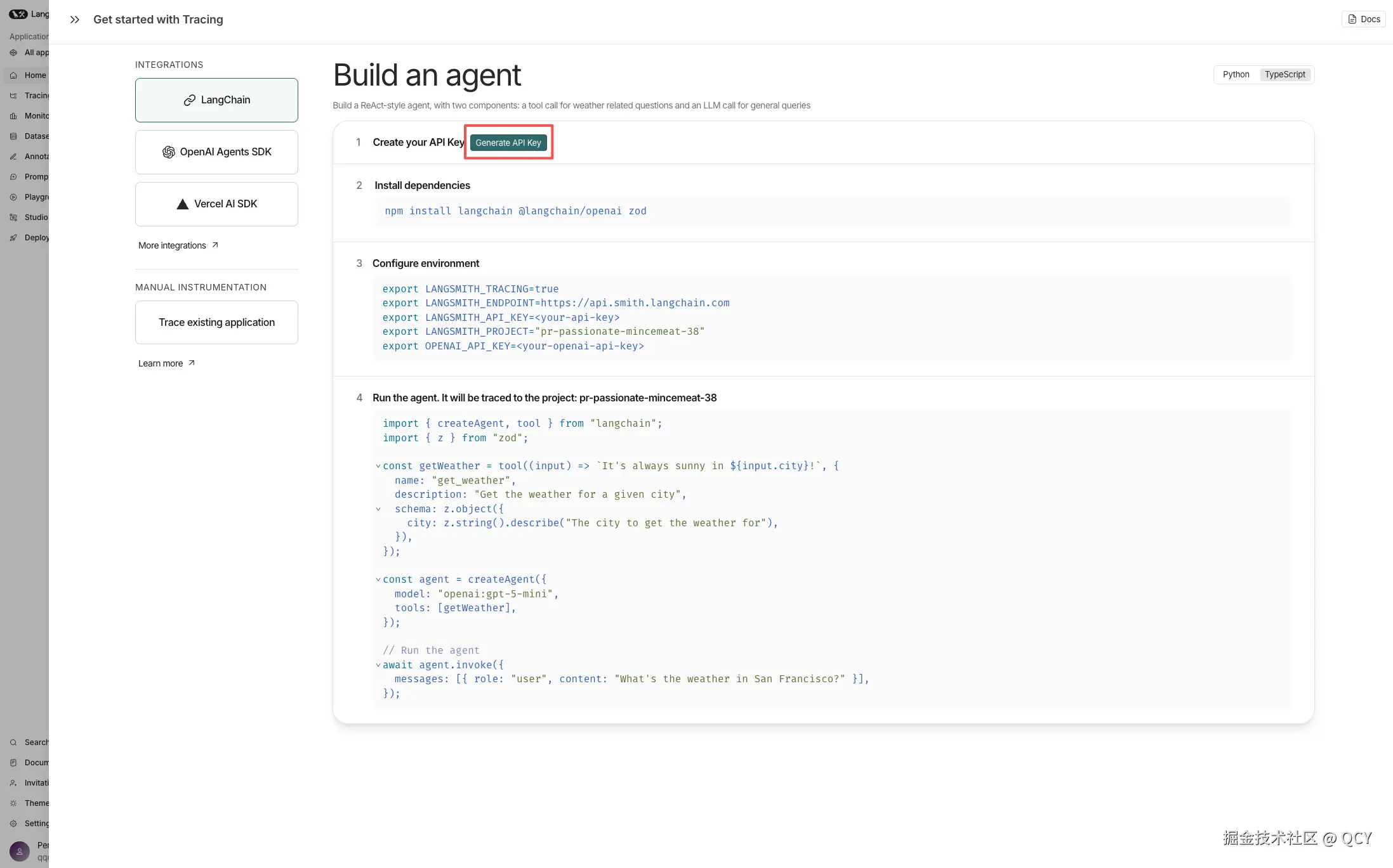 - **追踪监控**:LangSmith 用于 API 调用追踪