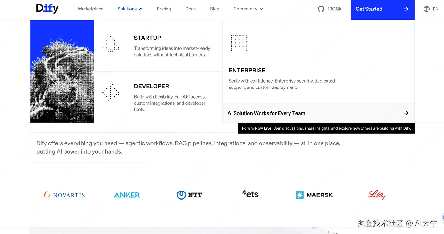 Dify的定位是"面向未来的开源LLM应用开发平台",试图通过融合后端即服务(BaaS)与LLMOps理念,为开发者提供生产级的生成式AI应用构建能力。它更像一个"会思考的工具人",可以自动处理工单、生成个性化报告,但在知识管理领域,它只是众多功能中的一个模块,缺乏系统性的解决方案。