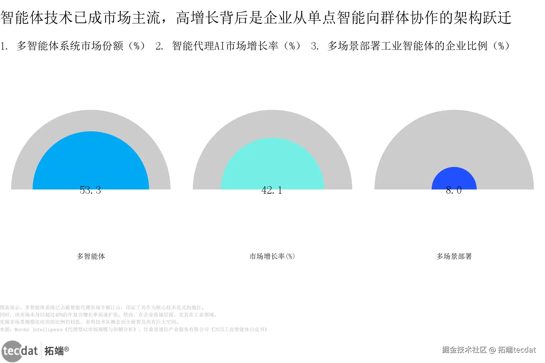 | 博睿数据《2026智能体协同矩阵重塑自主运维新范式白皮书》 | 多智能体系统在2025年已占智能代理AI市场53.30% | 市场份额53.3% | 基于Mordor Intelligence数据,覆盖全球市场 |