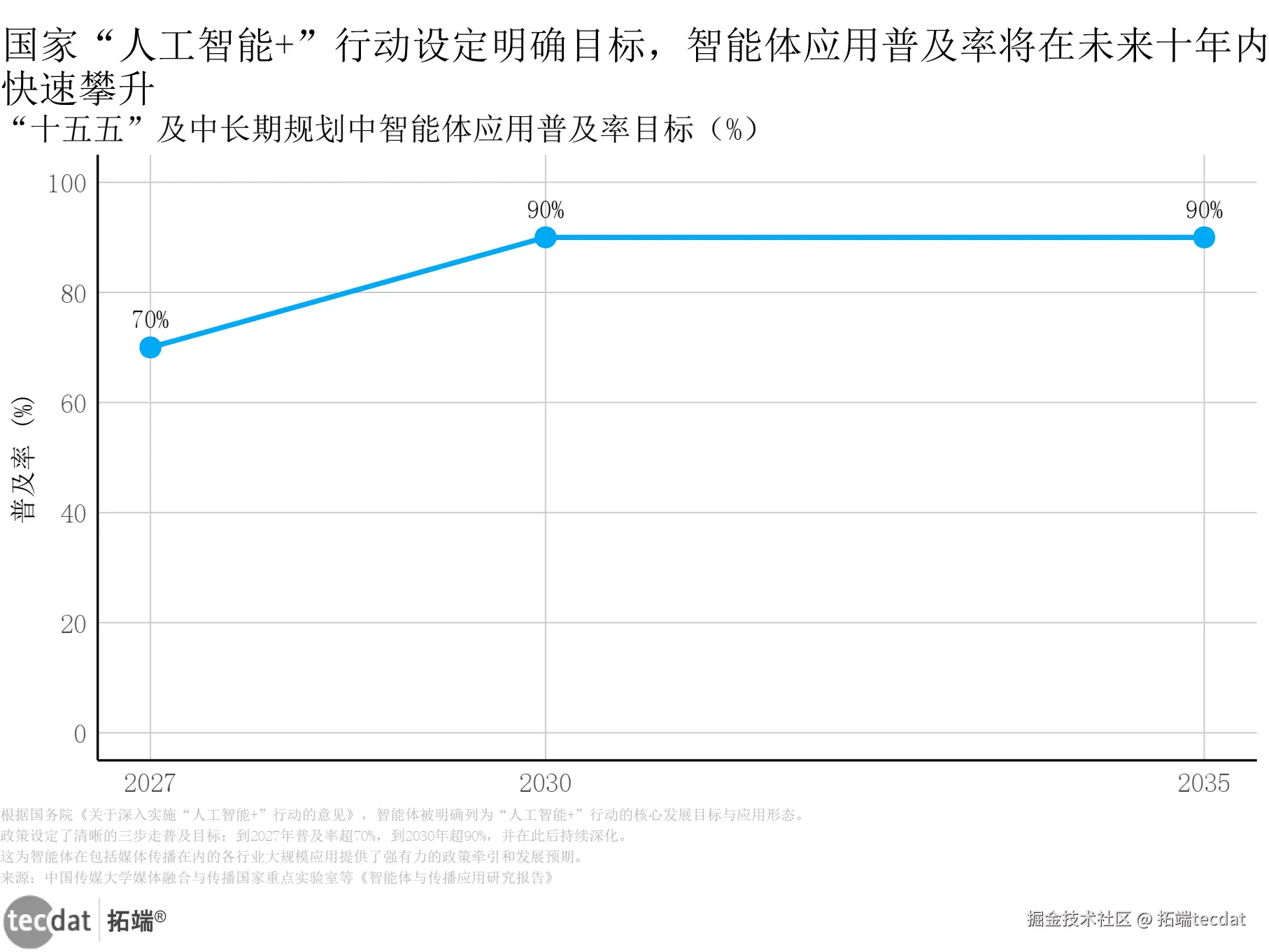 图表4:国家“人工智能+”行动设定明确目标,智能体应用普及率将在未来十年内快速攀升