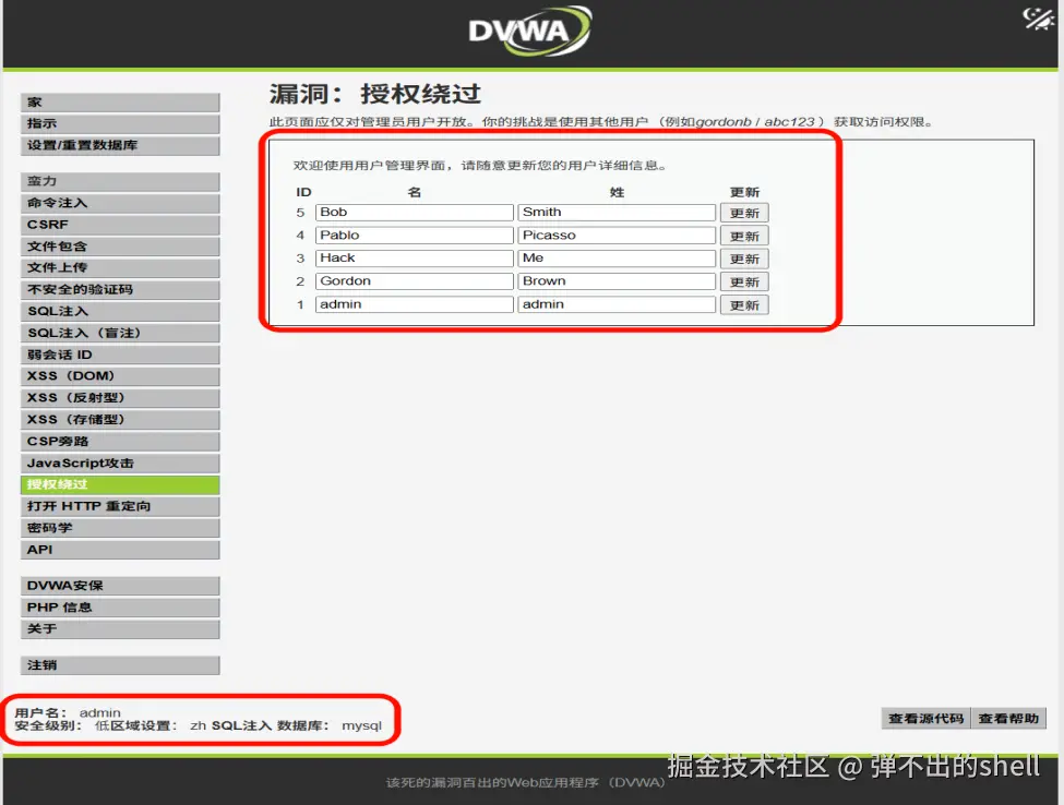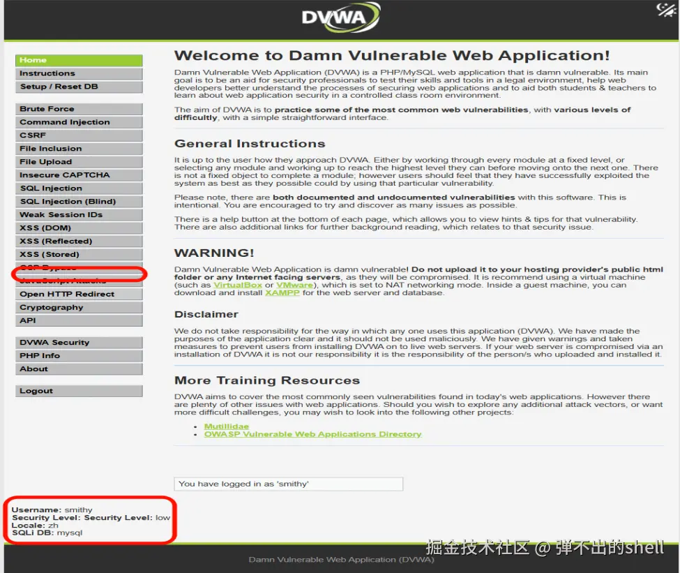 难度等级:Low 报告说明:本报告涵盖了 DVWA 靶场在低安全等级下的 17 项漏洞复现过程。