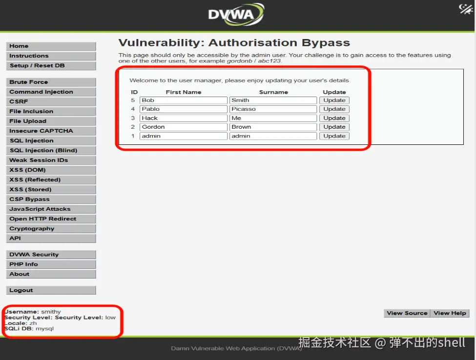http://dvwa/vulnerabilities/authbypass/>