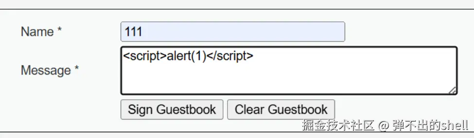 - Step 1:在留言框中输入 XSS Payload 并提交。