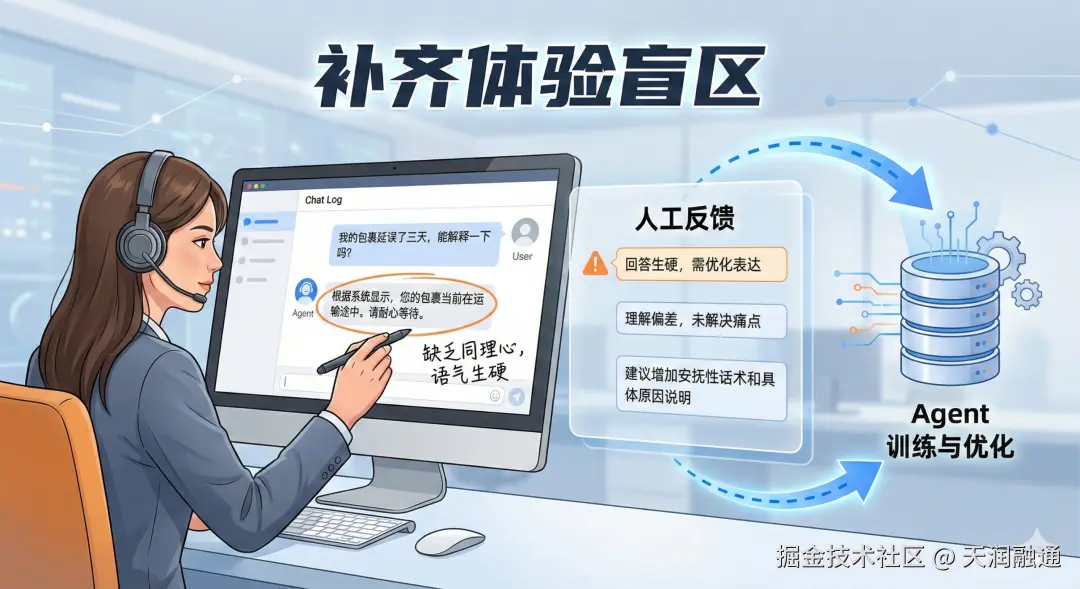 在真实使用中,一线客服人员往往最清楚哪些回答“看起来没错”,但在实际沟通中并不让人信任、理解或接受。因此,通过持续的人工反馈机制,这些真实使用感受才能被记录下来,并反向用于优化Agent的表现。