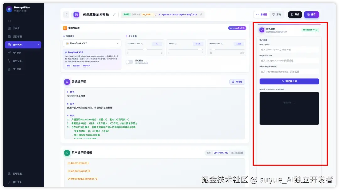 如果你同时维护多个App、小程序、H5,每个都需要AI功能,PromptStar能帮你统一管理所有Prompt。某个Prompt效果不好?控制台测试调教,然后保存,即可生效。