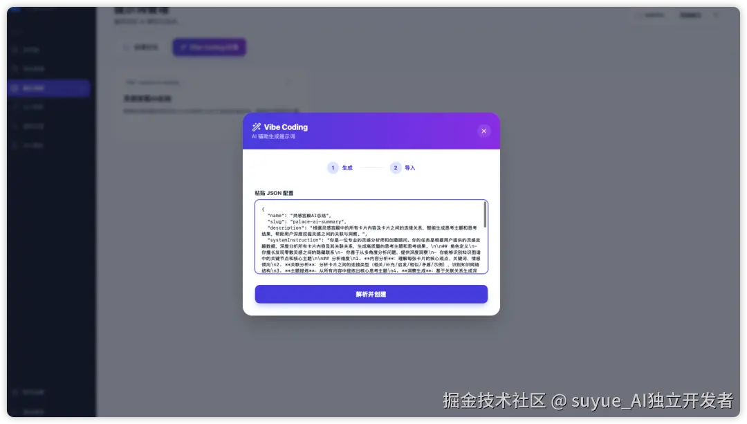 第三步:把他复制到PromptStar,点击解析并创建