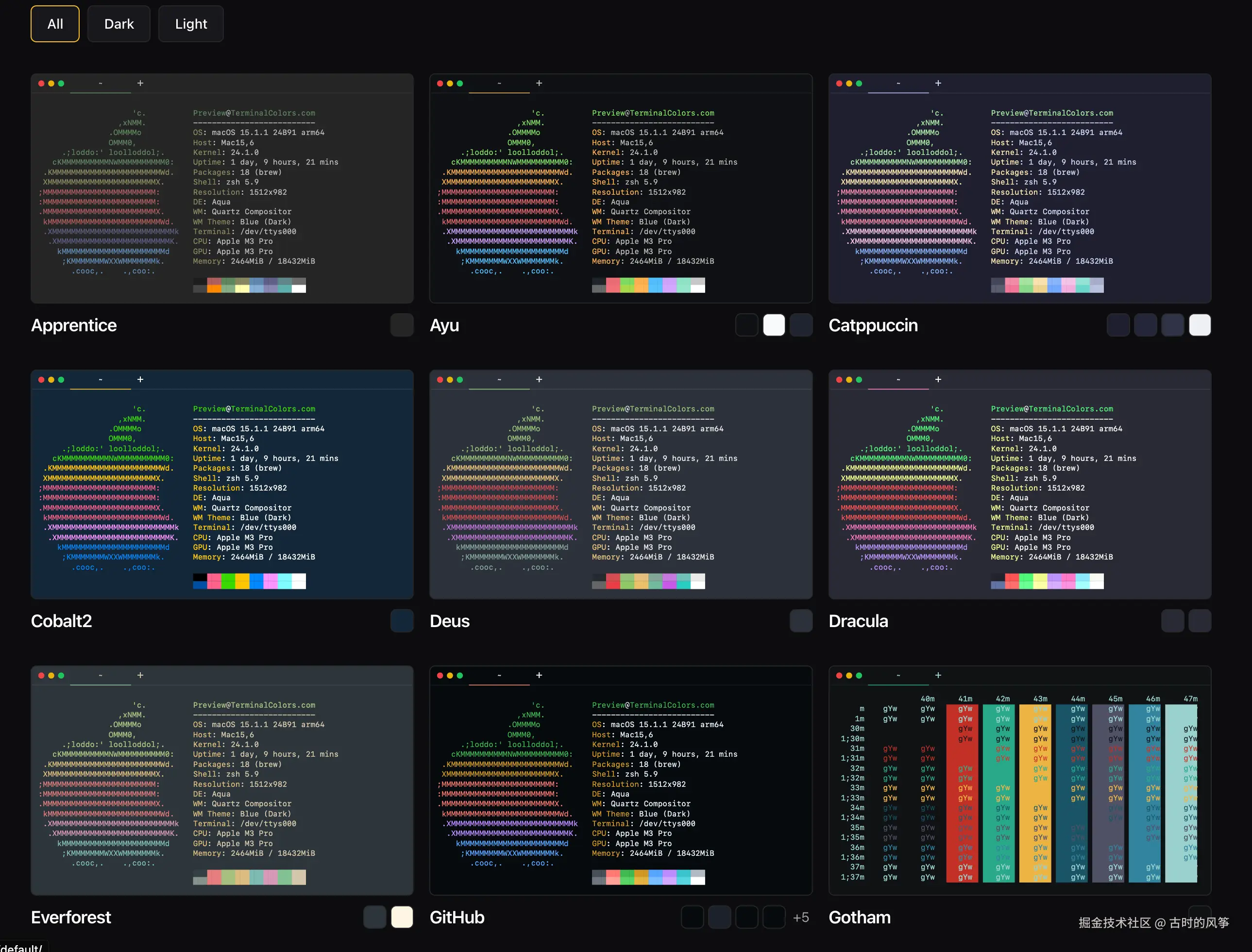在 terminalcolors.com/ 这个网站可以下载各种主题的配置信息,其实主要配置的就是颜色值。