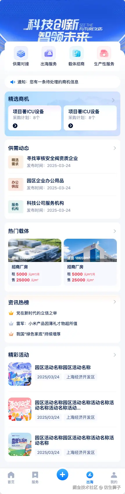 从蓝湖上下载了设计稿、切图和代码,全部扔给模型,实现首页。