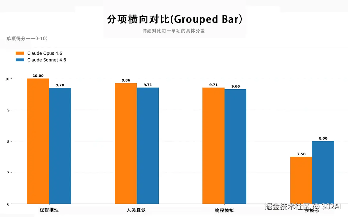 但在面对高阶抽象思维的测试中,Opus 4.6 展现出了更强的逻辑链推演能力,依然是处理“新颖问题求解”和“深度推理”的最强选择。侧面印证了 Sonnet 4.6 在面对需要多步跳跃式思维的复杂难题时,其逻辑闭环的严密性仍与旗舰模型存在微妙差距。