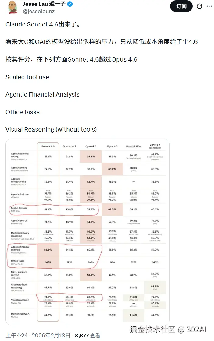 302.AI 已第一时间接入 Claude Sonnet 4.6 的模型 API,这位性价比新王能否扛得起大旗?本期实测将深入实战一探究竟。