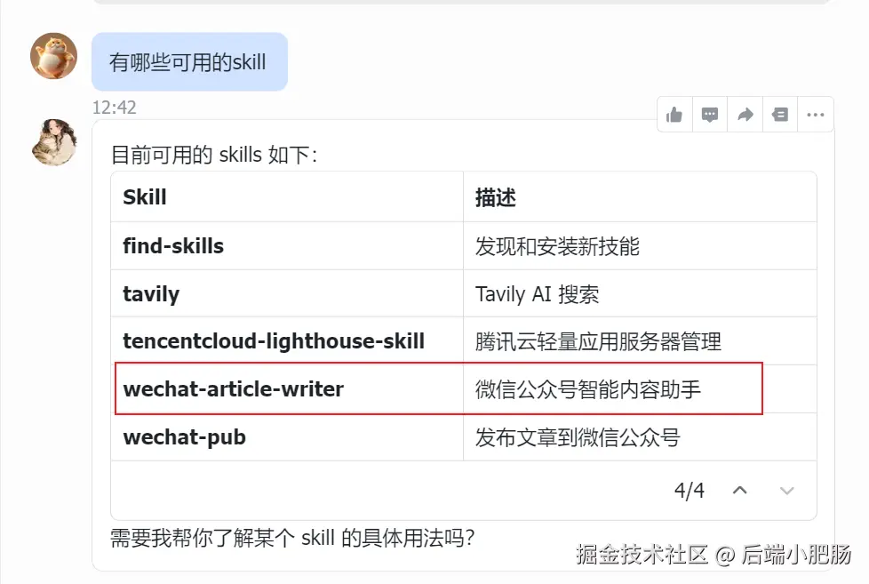 上传后可以和OpenClaw对话二次确认Skill已经正确加载。