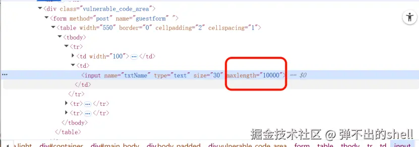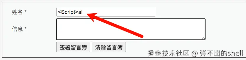 Name字段进行注入(可能需要通过 F12 修改输入框长度限制)。<Script>alert(1)</Script>但遇到一个问题,前端做了简单的输入框长度检测简单,在源代码里面修改长度即可