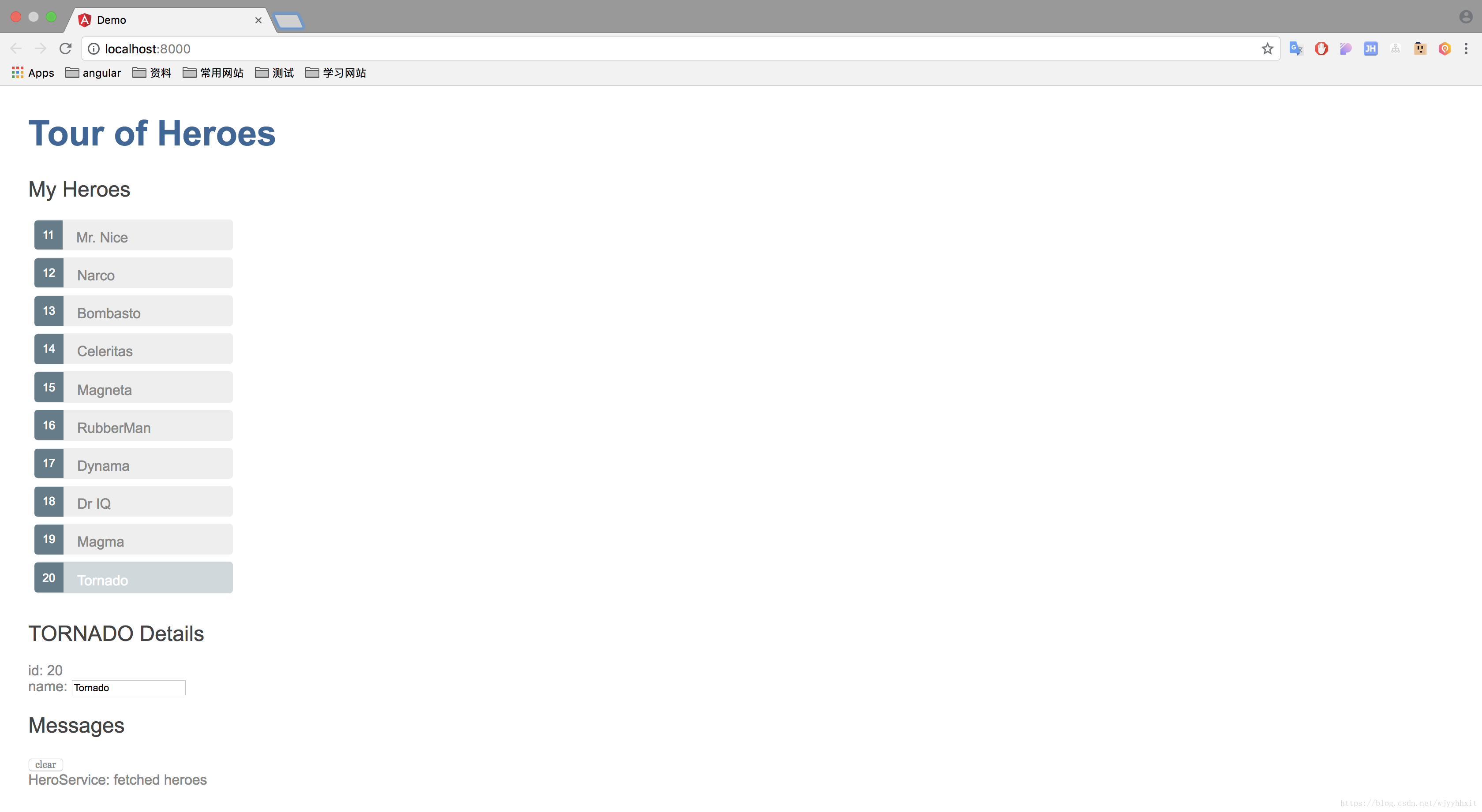 注意:of(HEROES) 会返回一个 Observable<Hero[]>,它会发出单个值,这个值就是这些模拟英雄的数组。