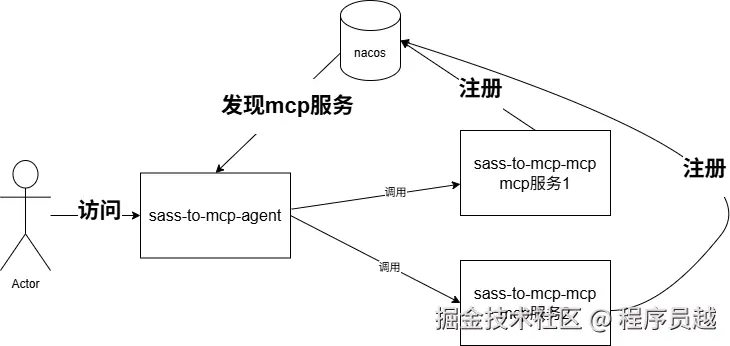 sass-to-mcp-agent:作为服务调用端,核心功能是通过命令行控制台与用户进行交互,通过Nacos发现已注册的MCP服务,并根据用户输入的指令,自动调用对应的MCP服务工具,返回处理结果。