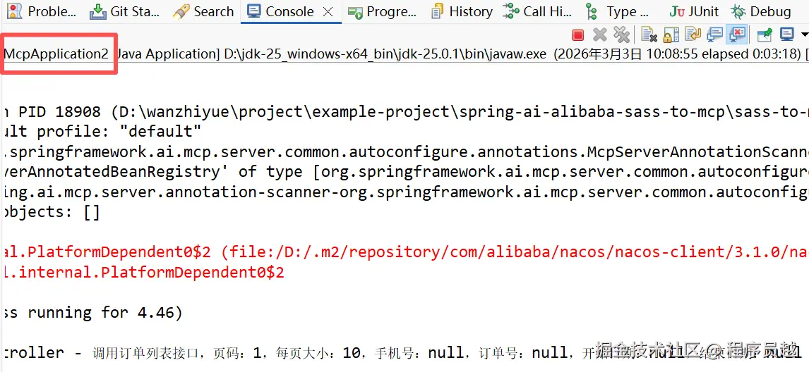 Agent端(MCP调用方)必须在所有MCP服务实例启动并成功注册到Nacos后,再启动Agent项目;若提前启动Agent,可能会因无法从Nacos发现MCP服务而报错