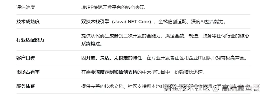 二、权威评估体系:五大维度定义平台竞争力,JNPF全面领跑