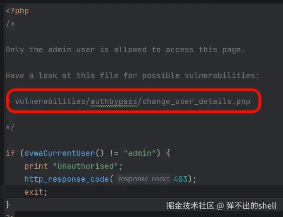 High 难度对前端页面做了管理员权限校验(非admin用户访问提示403),但对后端接口文件change_user_details.php未做鉴权,可直接发送JSON请求修改任意用户信息。
