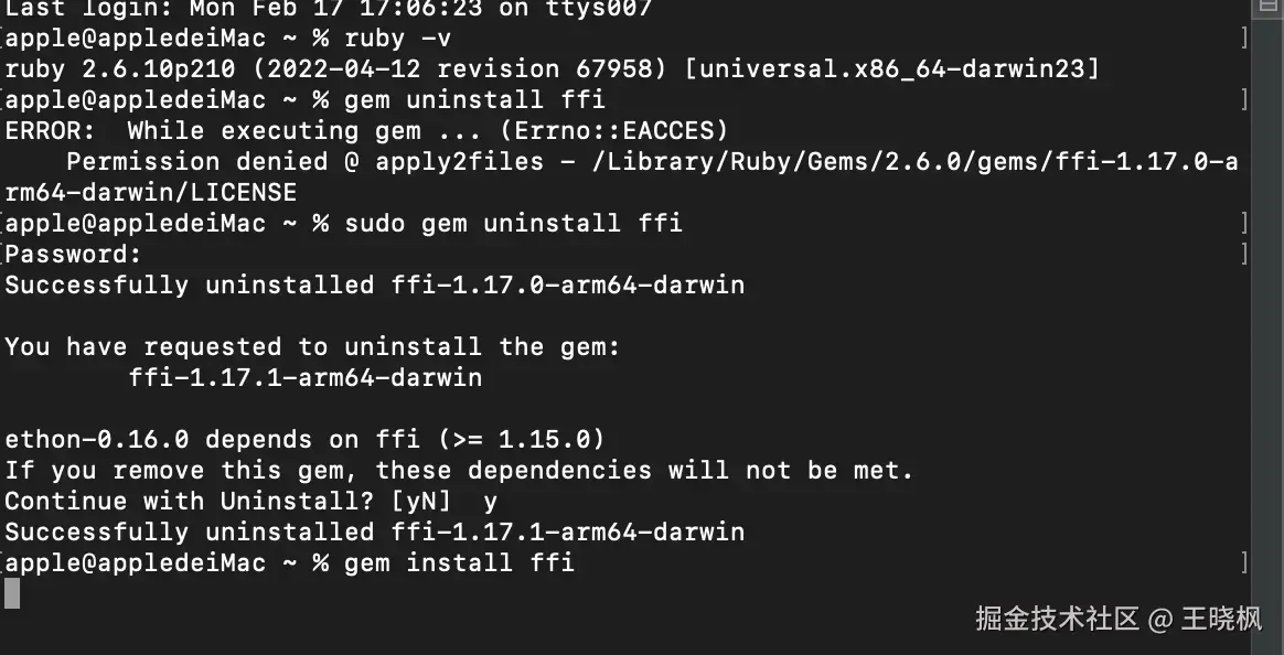 重新安装 ffi gem