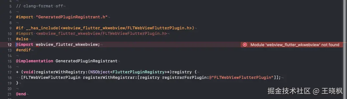 最近在研究flutter,在flutter中引入第三方webview_flutter后,运行iOS设备时报错,具体报错如下: