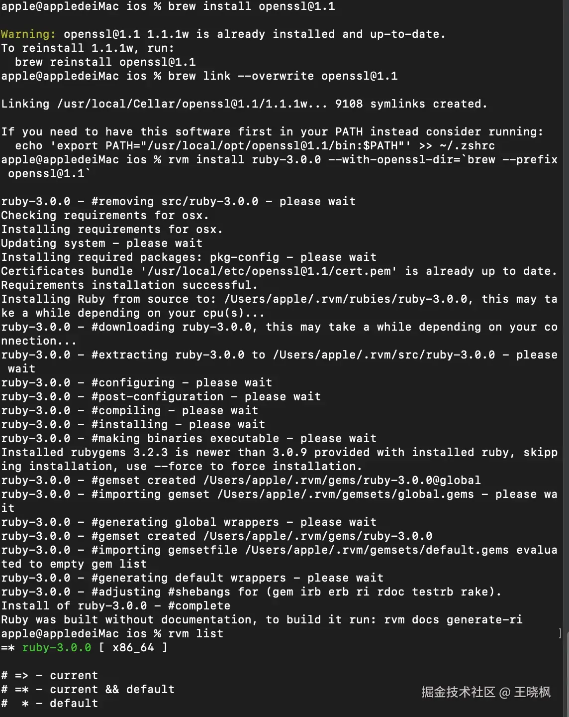 如果一定要安装Ruby 3.0版本,请安装1.1版本的OpenSSL,并卸载最新版本,同时指定使用HomeBrew安装的OpenSSL完成安装: