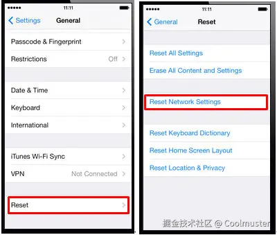 步骤 2. 点击“重置”,然后选择“重置网络设置”。