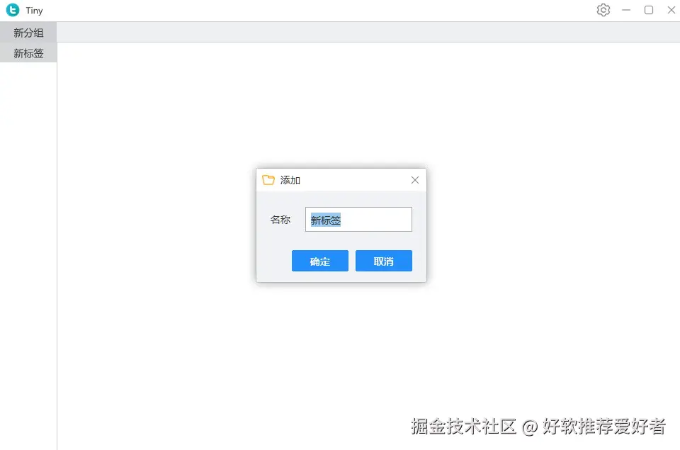 分组功能位于 Windows 桌面快速启动工具 Tiny 界面最上方一栏,用户可通过右键完成添加、重命名等操作;标签功能在界面最左侧一栏,同样支持右键进行添加、重命名,方便对应用、文件、网址等内容进行分类管理。