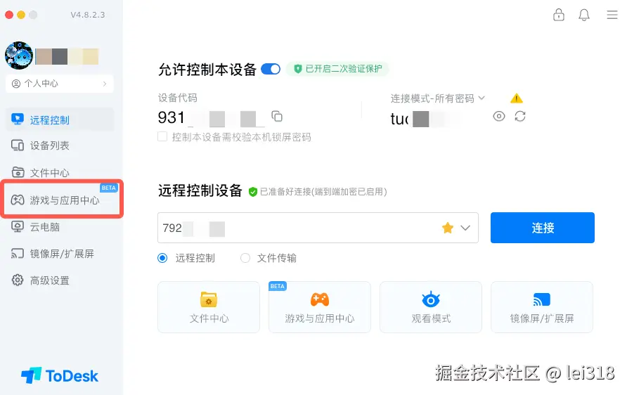 - ToDesk个人版:操作简单,连接响应快,游戏与应用中心一键启动。